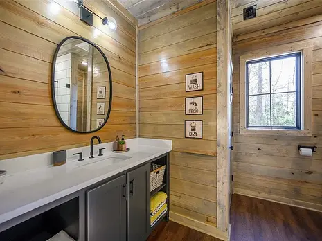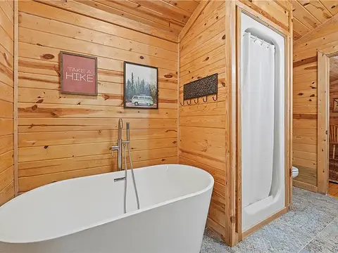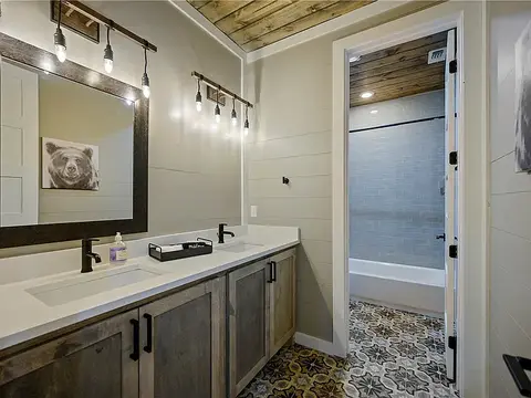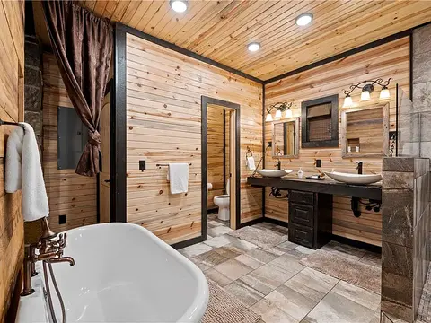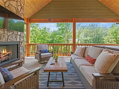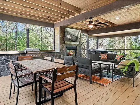 This beautiful turn key property in Timber Creek Trails is ready to be your next vacation home or short term rental. Incredible details and materials such as vaulted ceilings, wood beams, stone fireplace, custom cabinetry, and granite counters are exhibited throughout the cabin. Spa-like master suite includes a gas burning double sided fireplace, access to the back deck, large tub, and large shower. Upstairs, the game room is perfect for kids with a pool table, two twin beds, full sized bed, as well as full bath and balcony access. Outside living is just as luxurious with large covered deck, outdoor kitchen, outdoor shower, hot tub, TV, fireplace, and fire pit. Sleeping 6, this cabin is perfect for a family getaway.
